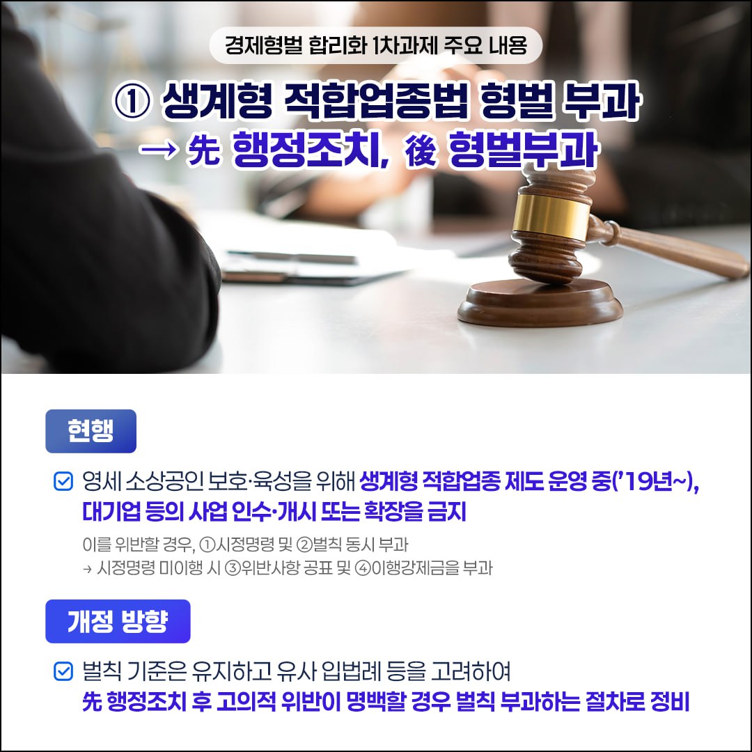 이번 방안은 기업의 고의·중대 위반이 아닌 행정적·절차적 위반에 대해 즉시 형사처벌을 부과하던 구조를 개선하여,