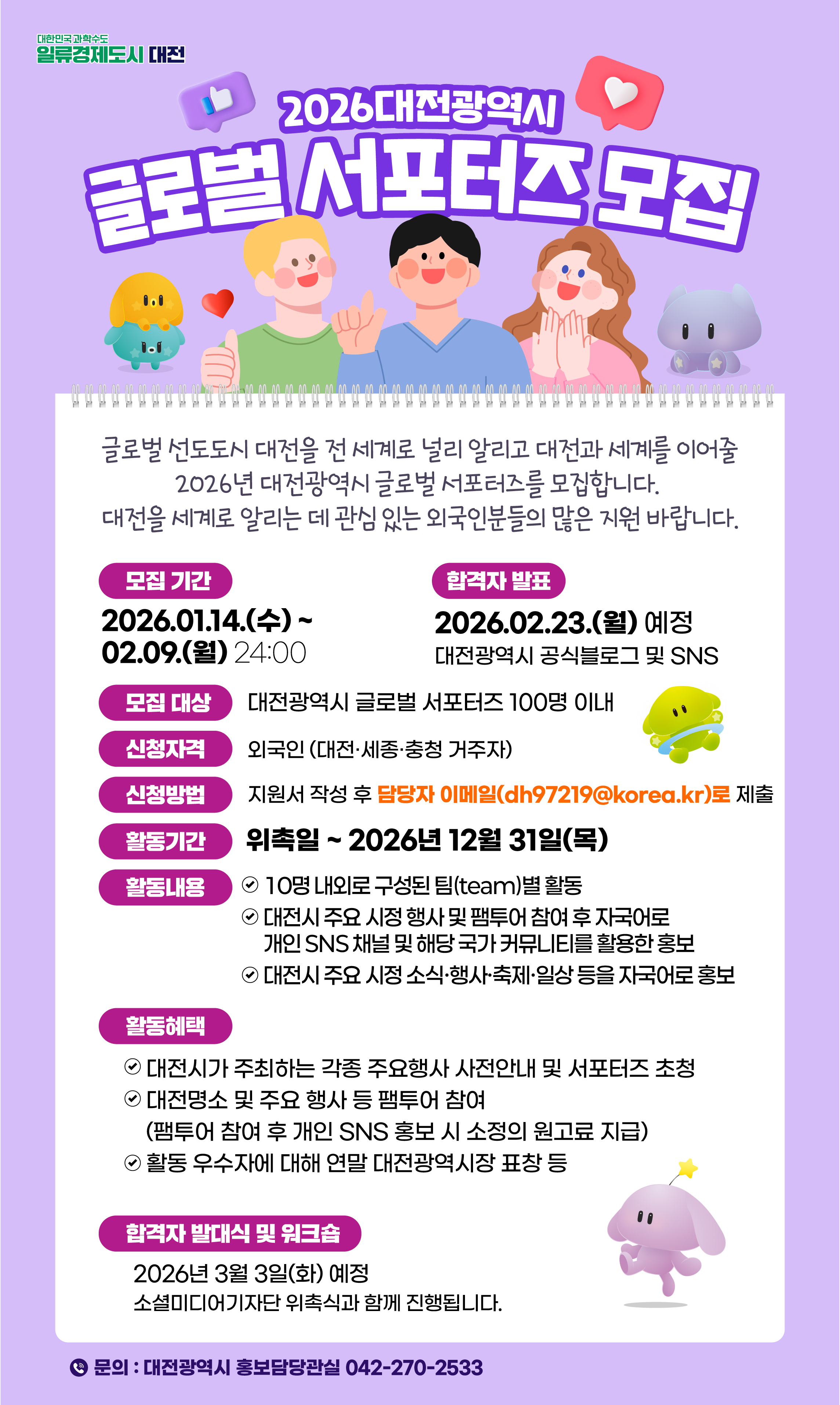 [대전광역시] 2026 대전광역시 글로벌 서포터즈 모집 안내