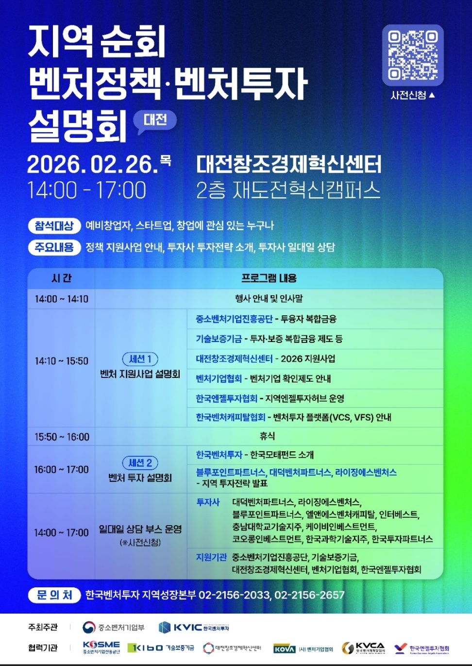 [중소벤처기업부] ⌈지역순회 벤처정책·벤처투자 설명회 in 대전⌋ 개최 안내