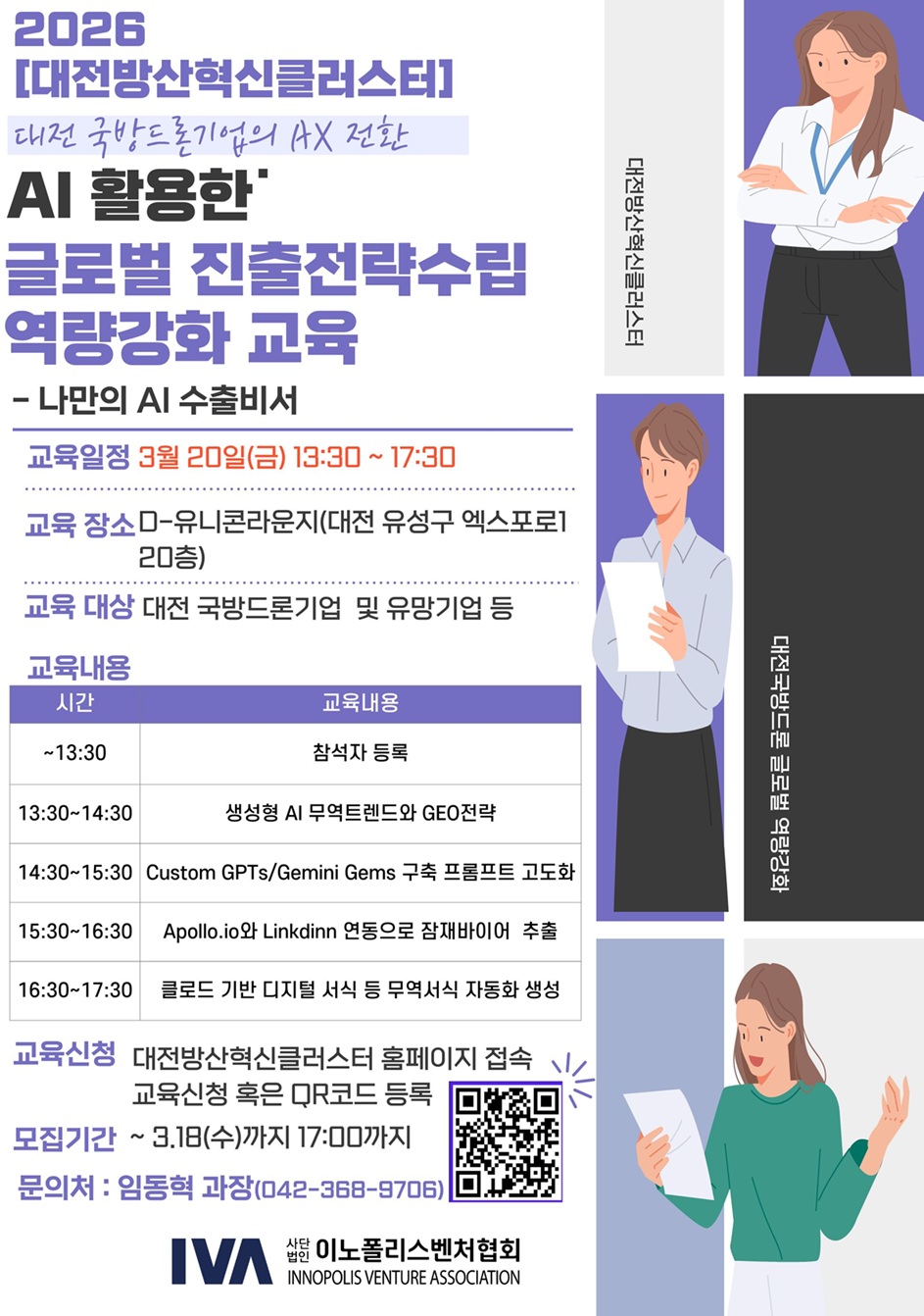 AI를 활용한 글로벌진출전략수립(수출실무 및 무역자동화(실습)) 교육을 추진하오니 많은 관심과 참석부탁드립니다.