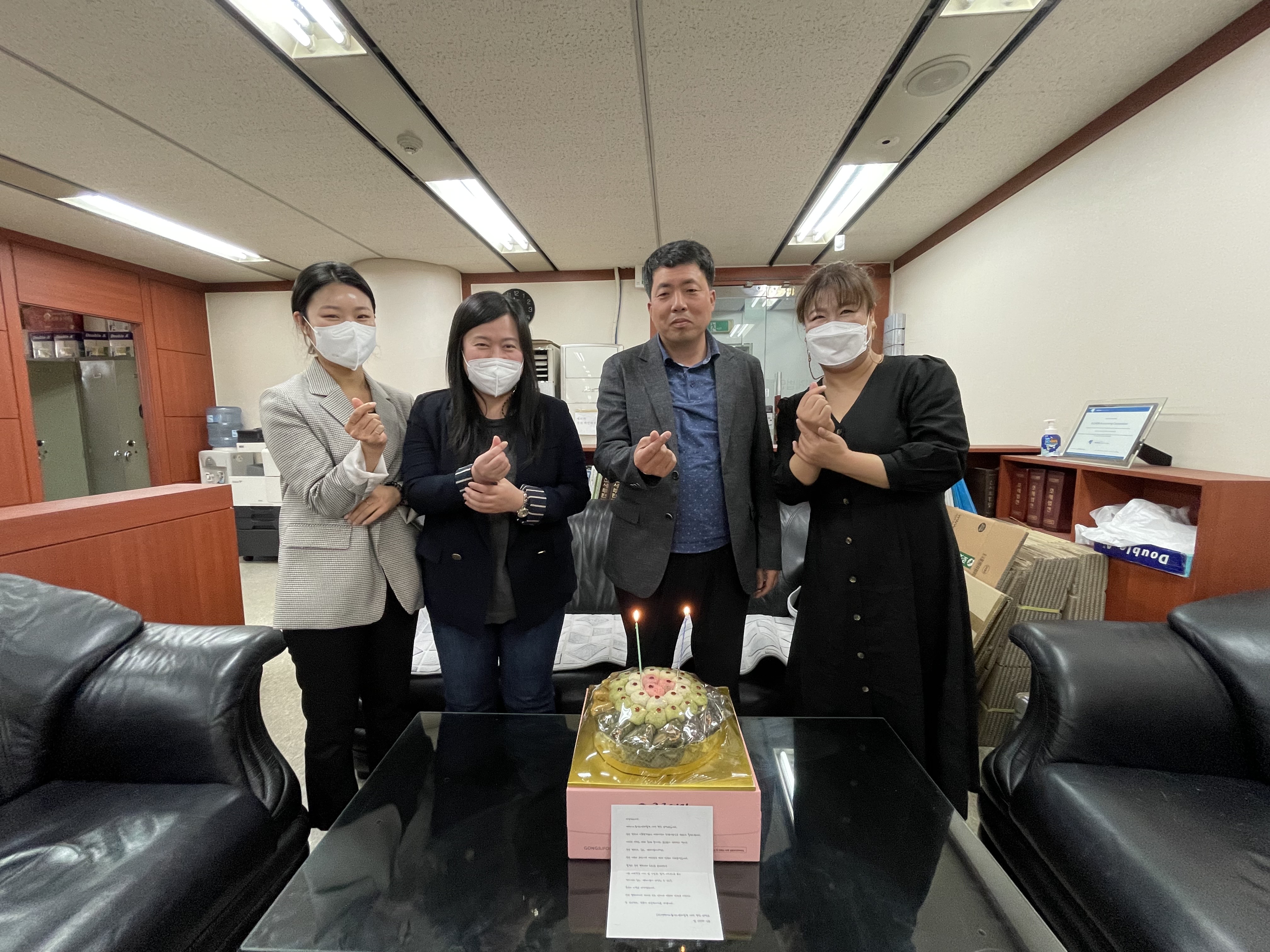 이촌회계법인 대전지점의 창립기념일을 축하하기 위해 협회에서는 직접 방문하여 떡케이크와 축하서신을 전달하였습니다.
