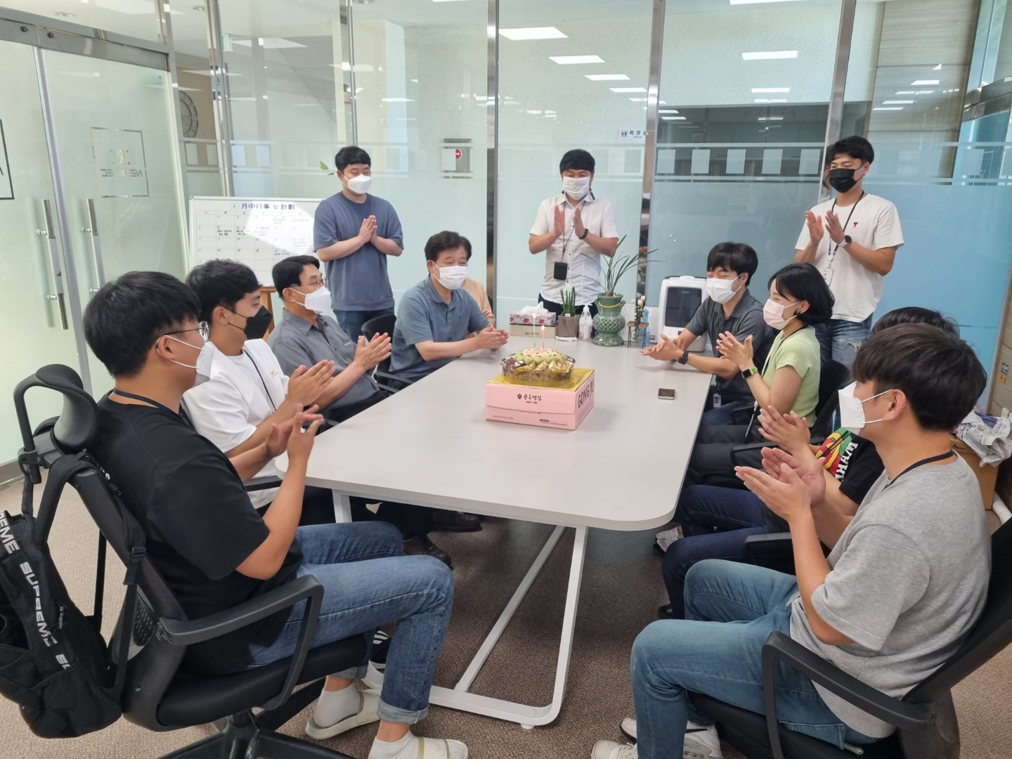 (주)네스앤텍의 창립기념일을 축하하기 위해 협회에서는 직접 방문하여 떡케이크와 축하서신을 전달하였습니다.